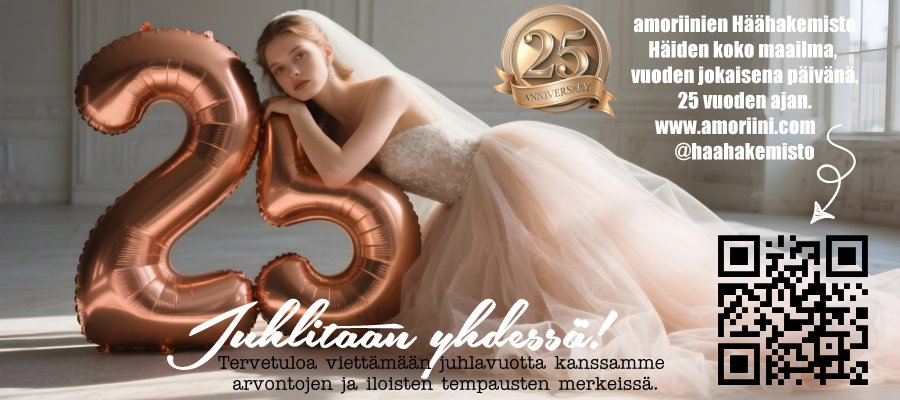 Yksilöity mainospaketti amoriinien Häähakemistossa, arvo 1000 € (alv 0%). Tutustu 25-vuotisjuhlaansa tänä vuonna viettävään amoriini.comiin!